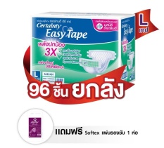 อย่ารอช้า ซื้อ1ลังฟรีแผ่นรองซับ1ห่อ ผ้าอ้อมผู้ใหญ่แบบเทป เซอร์เทนตี้ อีซี่เทป ราคาประหยัด ลัง Super Save ไซส์ L 96 ชิ้น ราคาแรงสุดสุด เพียง 999.00 บาท ส่งฟรี!!!