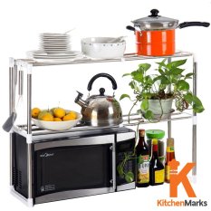 KitchenMarks ชั้นวางคร่อมไมโครเวฟ ชั้นวางของสแตนเลส ชั้นสแตนเลส ปรับความยาวได้ สำหรับวางของคร่อมไมโครเวฟ