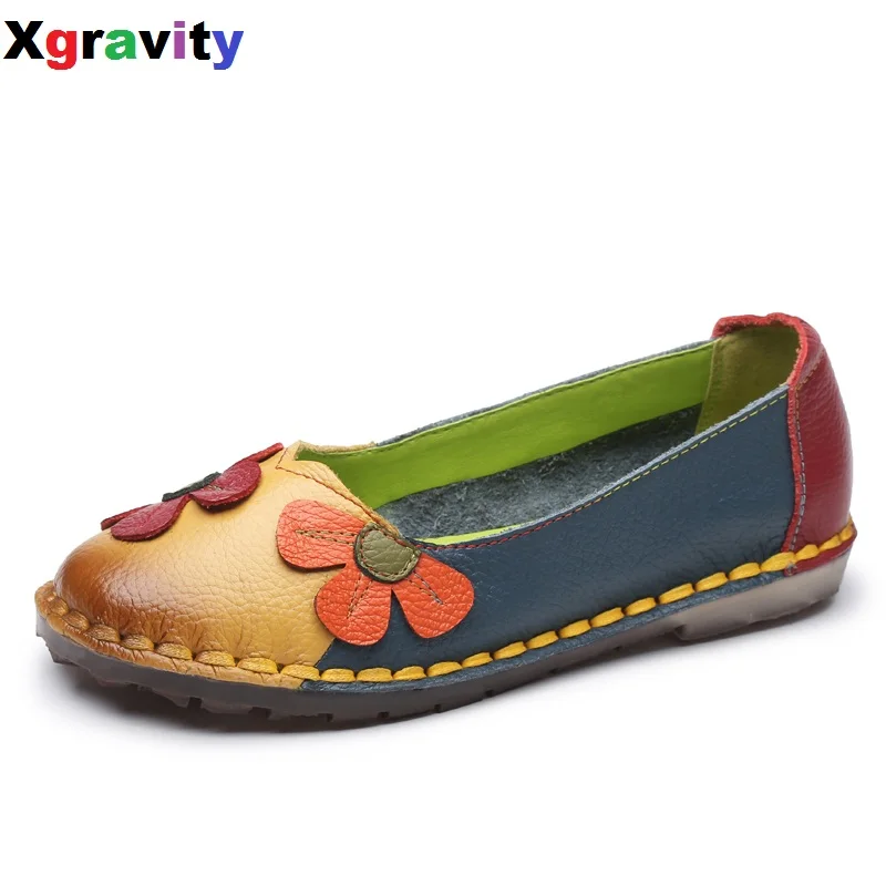 recommended Xgravity Summer Autumn Fashion Flower Design Round Toe Mix Color Flat Shoes Vintage Genuine Leather Women Flats Girl Loafer A006 with categoty Xgravity Summer Autumn Fashion Flower Design Round Toe Mix Color Flat Shoes Vintage Genuine Leather Women Flats Girl Loafer A006 is Best seller